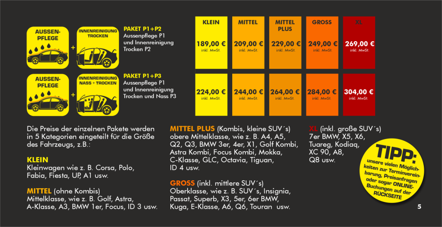 Vereinbaren Sie rechtzeitig einen Termin und lassen Sie sich beraten welche Möglichkeiten zur Reinigung und Pflege es für Ihr Fahrzeug gibt.